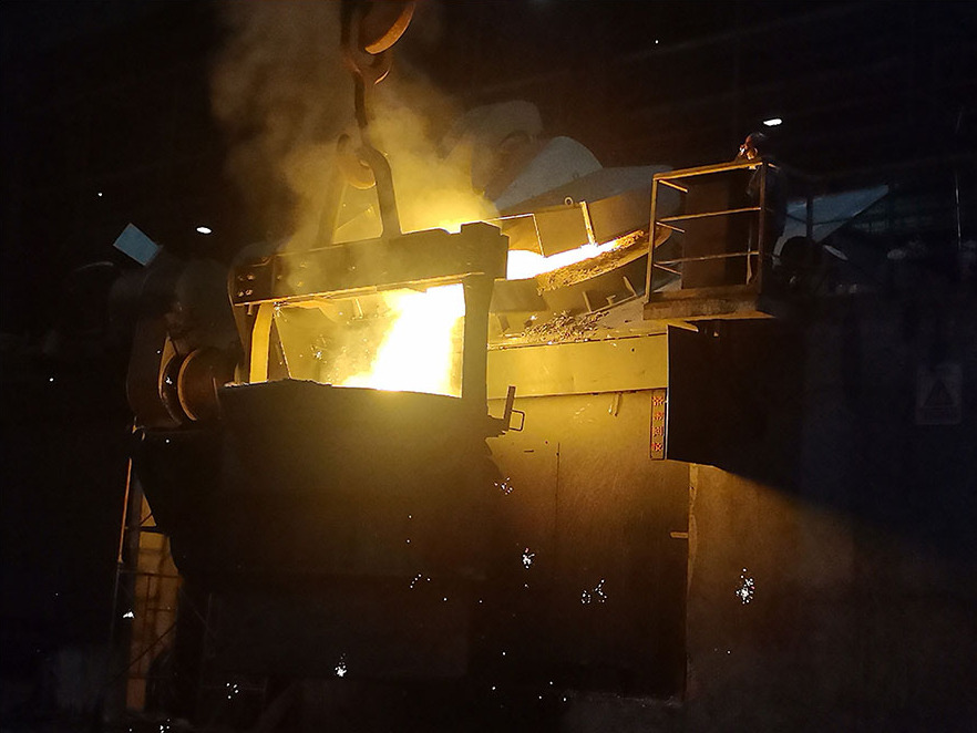 澆鑄現場,電爐內鐵水沸騰,傾瀉時濺起簇簇火花,宛如漫天星光,劃破夜色,
